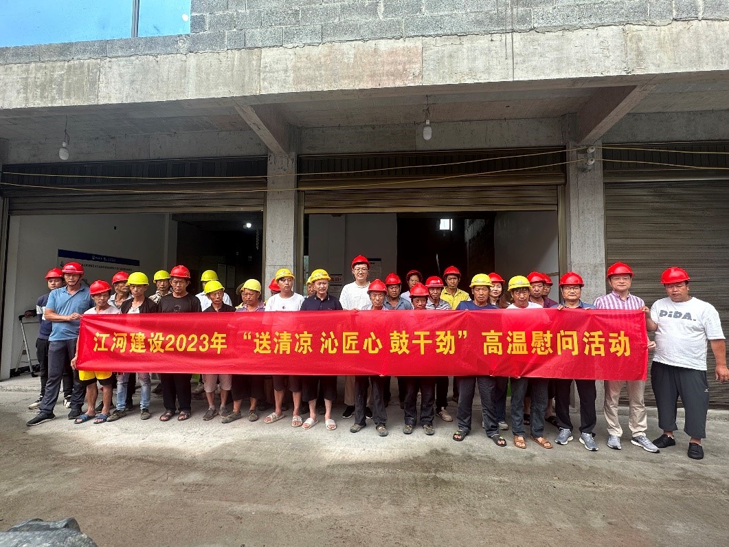 “夏送清涼,關懷暖心”。時值盛夏酷暑,江河建設公司各重點在建工程項目正在有序推進,一線的職工們備受“烤”驗。為有效改善職工生產生活條件,認真做好高溫天氣職工勞動保護工作,連日來,浙江江河建設有限公司工會組織開展“送清涼,沁匠心,鼓干勁”為主題的高溫慰問活動,成立由工管、工會、人力、安全等負責人組成的“紅+安全”慰問組,帶著公司董事長袁偉忠、總裁陳宋江的關懷問候和委托,深入全國各地的項目施工現場,慰問奮戰在高溫一線的工人,為其送去礦泉水、毛巾、風油精、飲料、藿香正氣水等防暑降溫等物資,并為他們對公司高質量發展建設作出的貢獻表示感謝。